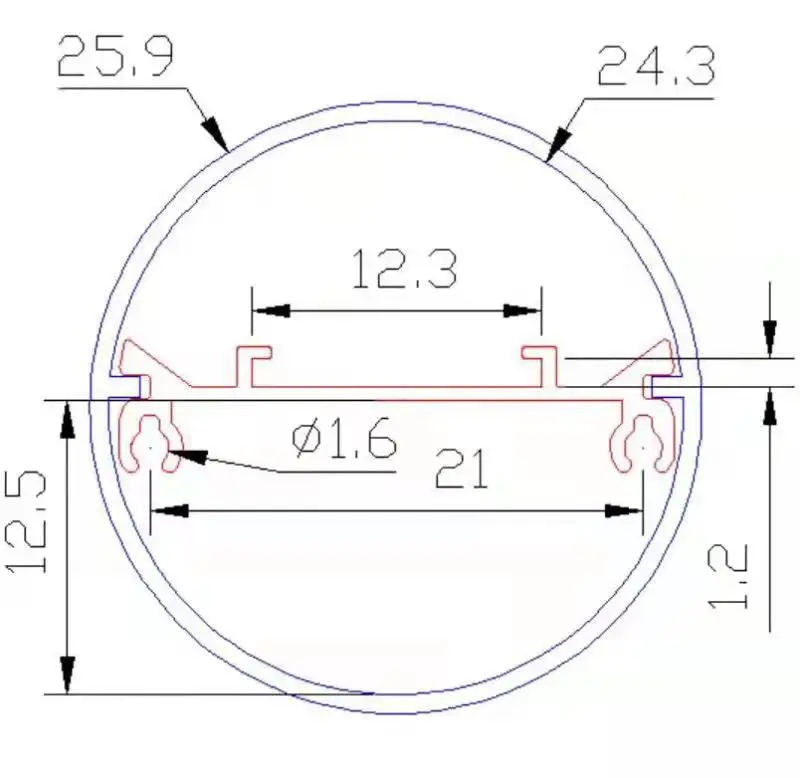| Próifíl alúmanaim taobh istigh d'ábhar | 6063 Cóimhiotal Alúmanaim |
