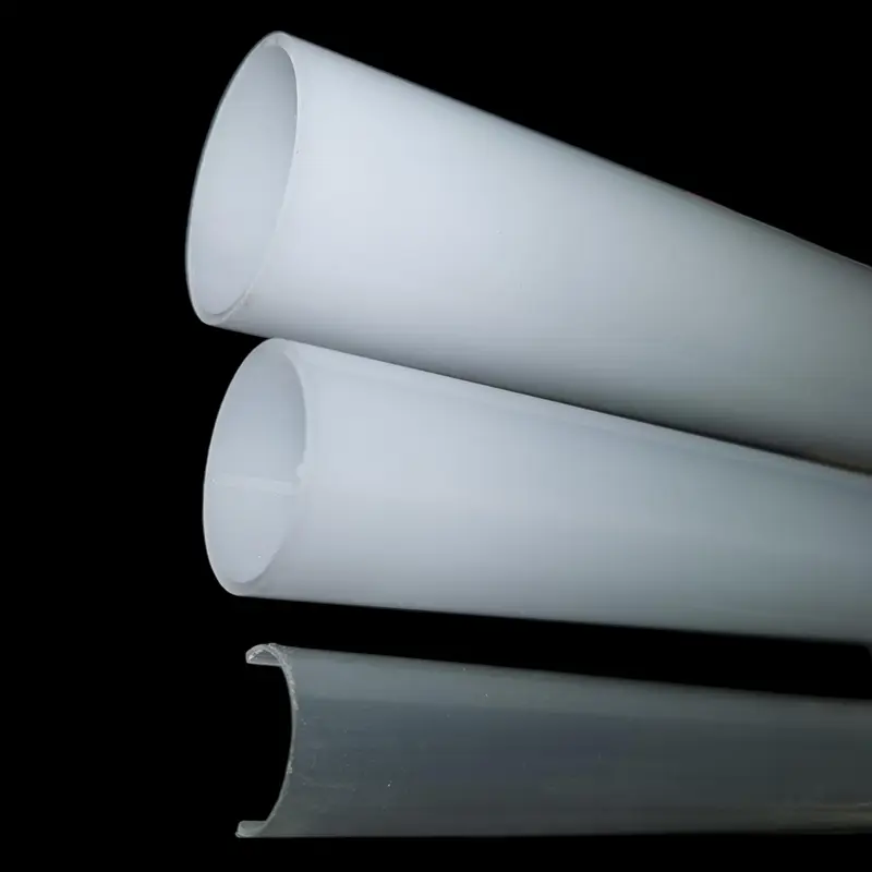 Tá JE speisialaithe i bhfeadán diffuser PC tréshoilseach a tháirgeadh ar feadh níos mó ná 8 mbliana. Úsáidtear na feadáin diffuser PC seo go príomha in iarratais soilsithe, mar shampla na feadáin solais LED coitianta agus na diffusers taobh istigh de shoilse líneacha LED fada, stiall-chruthach a dháileann solas go cothrom. Déantar go leor díobh seo as ár bhfeadáin diffuser ríomhaire. Táirgeann muid raon iomlán de mhéideanna feadáin diffuser PC, ó 4mm go 400mm ar trastomhas, agus tagann gach sonraíocht i roinnt tiús. Tá an fad níos solúbtha fós; is féidir linn a shaincheapadh ar aon fhad a theastaíonn ón gcustaiméir. Le linn na táirgeachta, cuirimid sciath freisin ar dhromchla an fheadáin, cosúil le armúr dofheicthe, rud a fhágann go bhfuil siad scratch-resistant agus salachar-resistant, rud a shábháil go leor trioblóide le linn úsáide agus iompair. I mbeagán focal, má tá na feadáin bhabhta seo ag teastáil uait le haghaidh do dhaingneáin soilsithe, ná bíodh drogall ort teagmháil a dhéanamh linn ag am ar bith chun saincheaptha a phlé de réir do riachtanais!