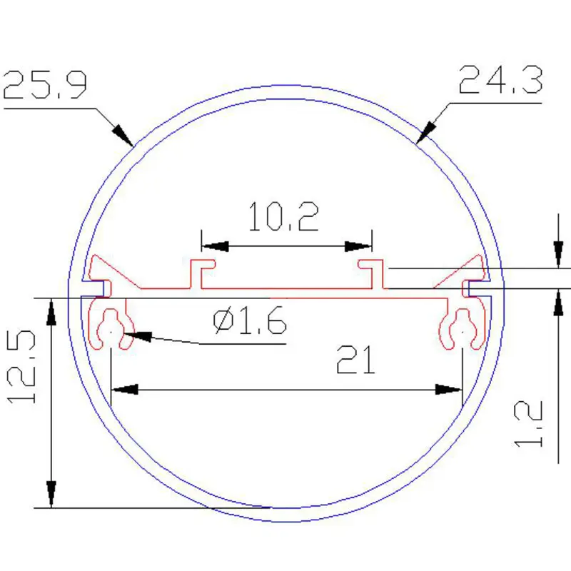 | Próifíl alúmanaim taobh istigh d'ábhar | 6063 Cóimhiotal Alúmanaim |